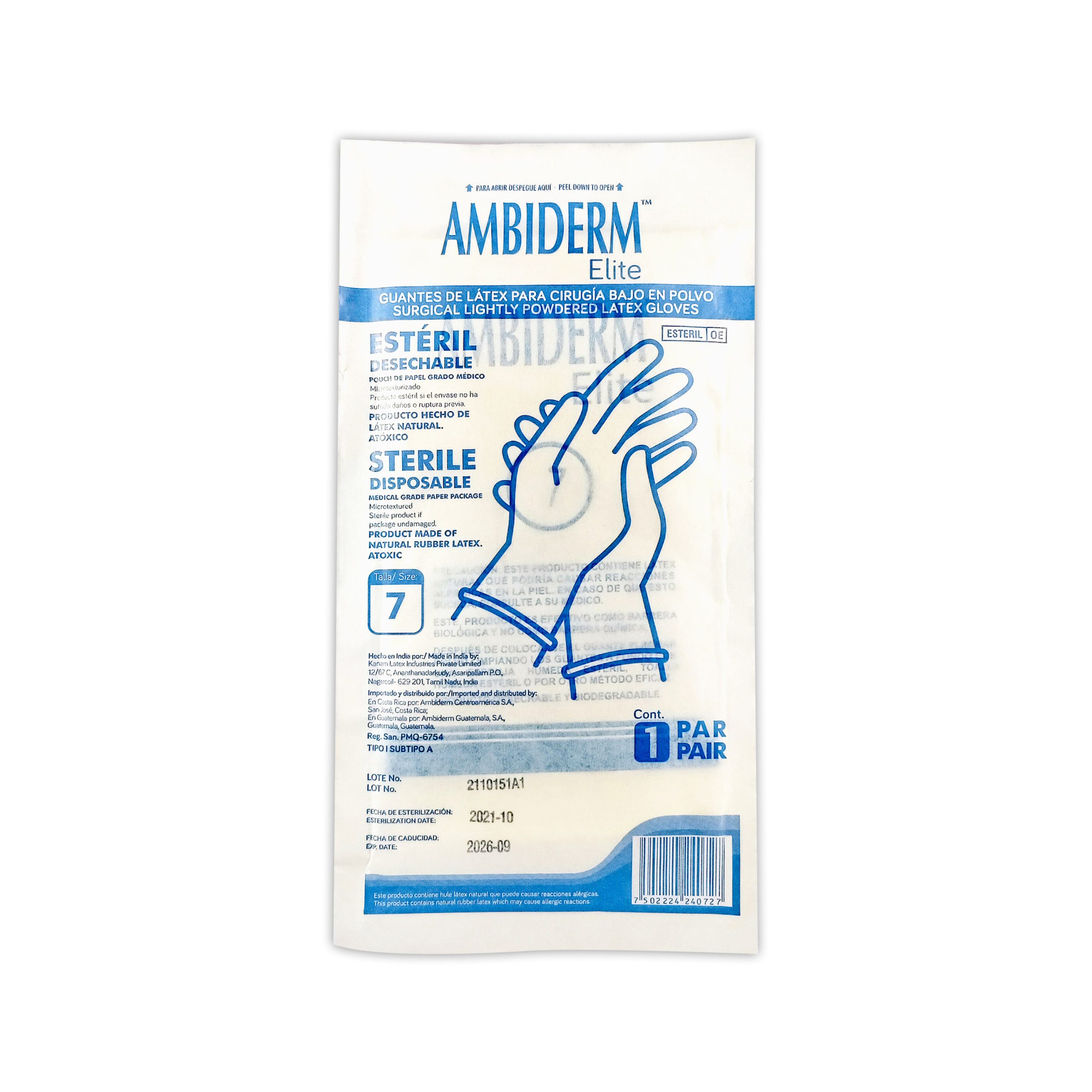 GUANTE DE LATEX ESTERIL 7 X2 UN AMBIDERM