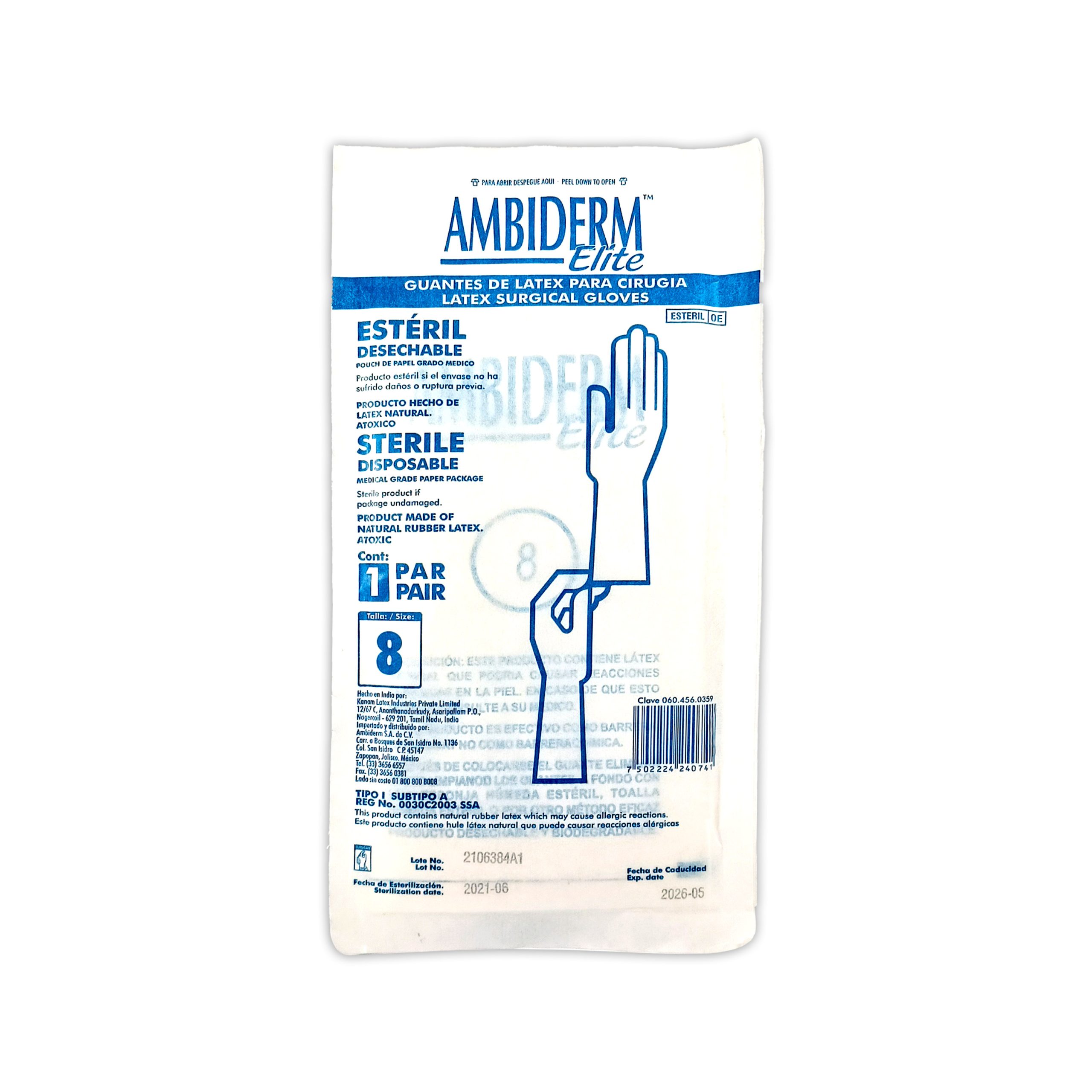 GUANTE DE LATEX ESTERIL 8 X2 UN AMBIDERM